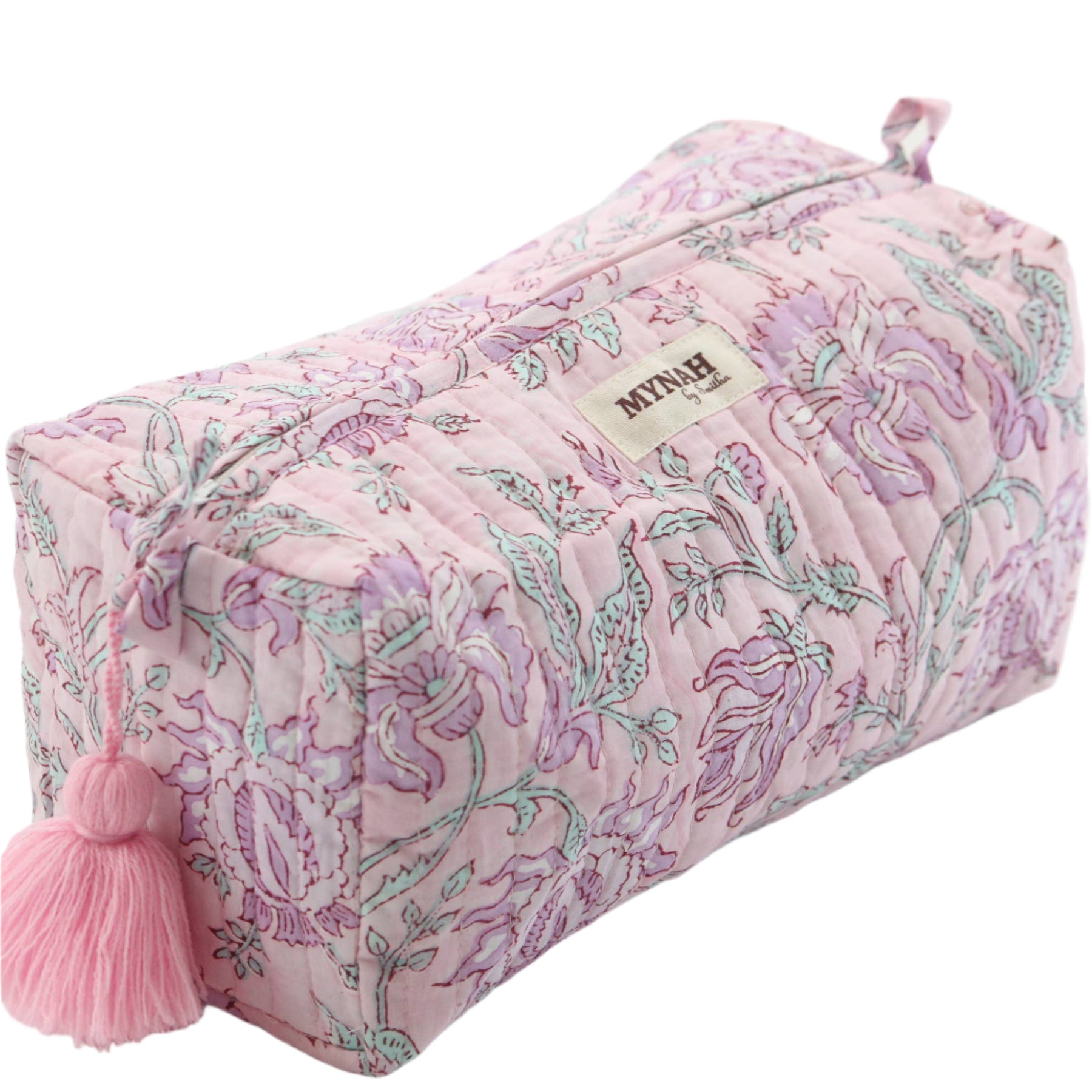 Experience the charm of this hand block-printed quilted travel bag, designed for both style and practicality. This large-sized pouch measures 10” x 4.5” x 4” and is perfect for organizing your travel essentials. With a waterproof lining and machine washable fabric that gets softer with every wash, it’s as durable as it is beautiful.