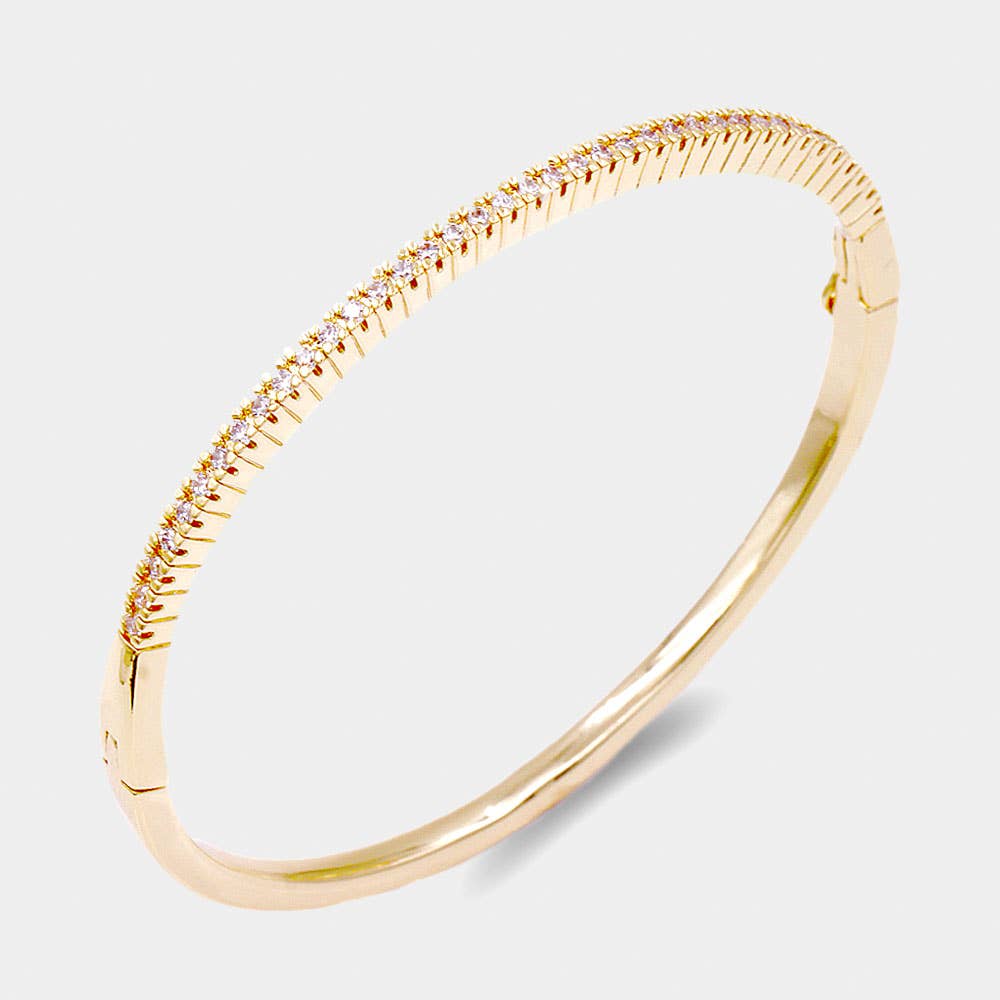 Gold Plated CZ Embellished Evening Bangle Bracelet: Gold