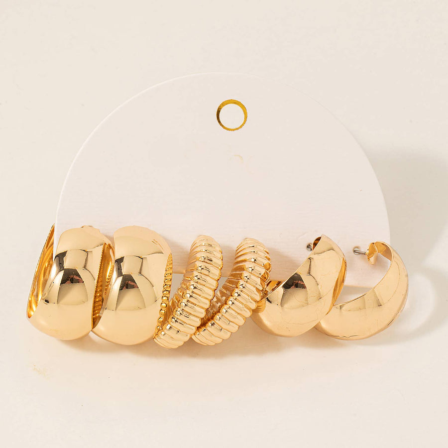 Mixed Metallic Huggie Hoop Earrings Set: GD
