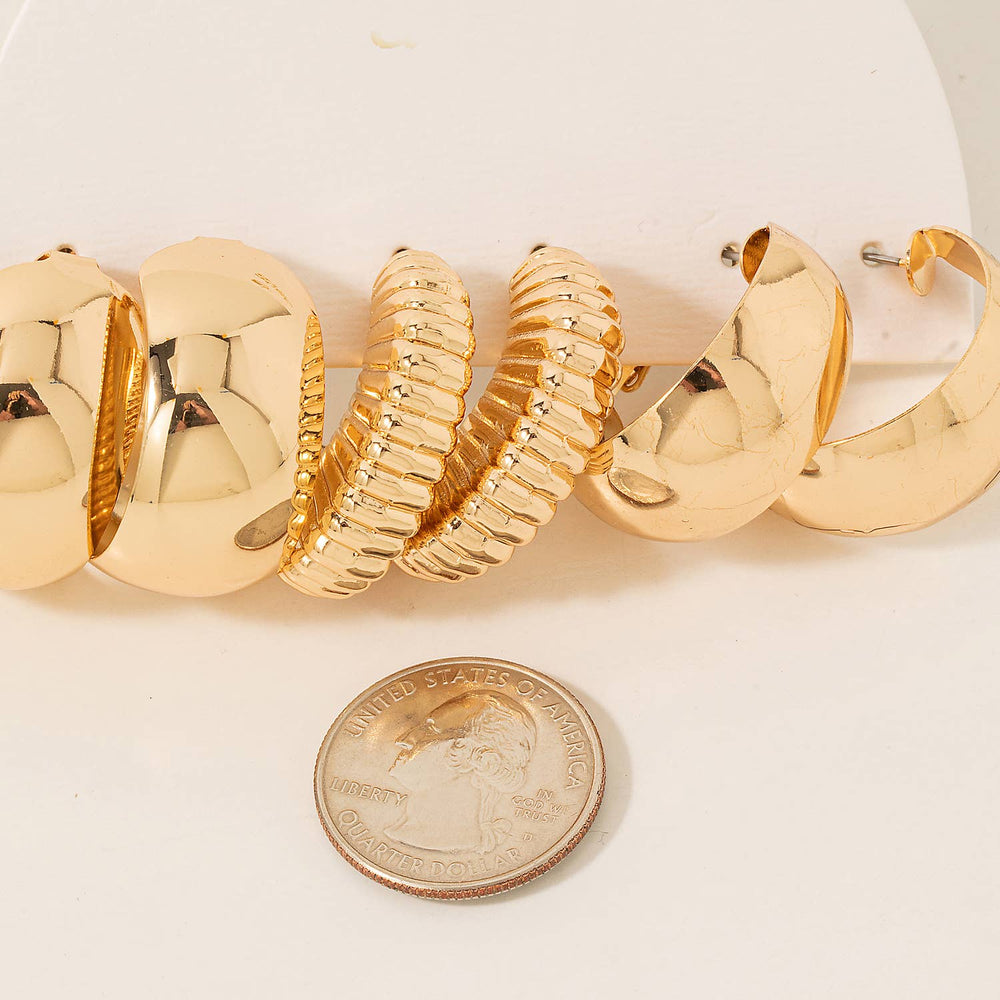 Mixed Wide Metallic Hoop Earrings Set: RH