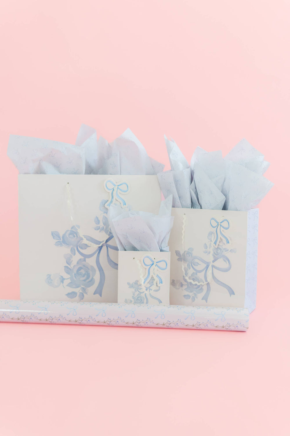 Blue and Cream Bows Short Sleeve Loungewear Pajama Set: XL