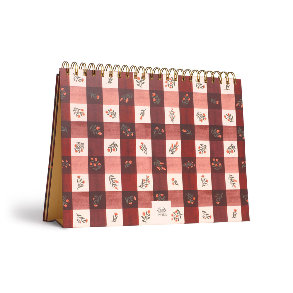 Floral Gingham Spiral Undated Monthly Desk Pad