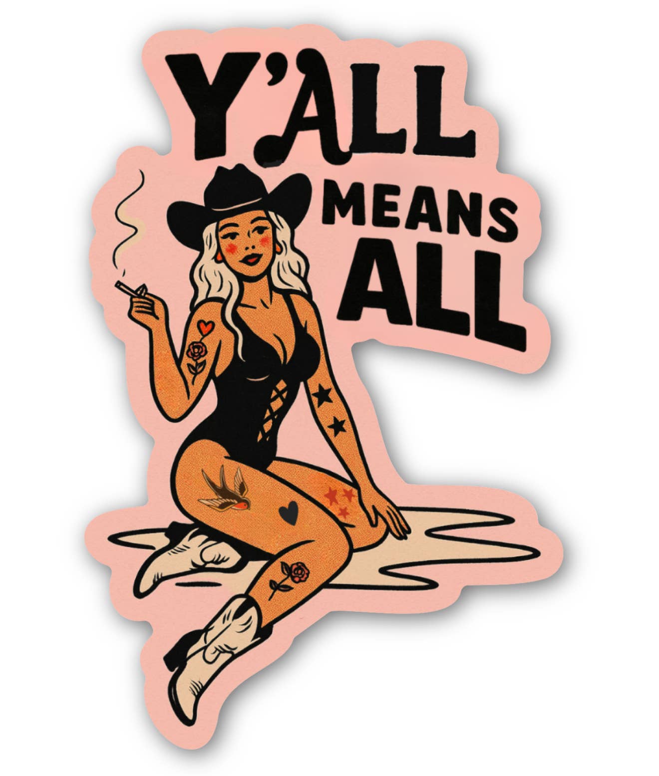 Y’all Means All Cowgirl Sticker – Inclusive Western Pin Up